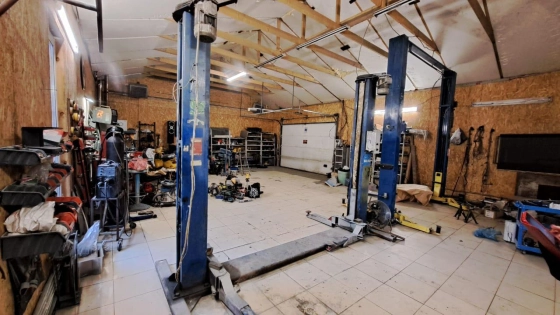 🚗 На территории участка находится просторный гараж 100 м2 с фундаментом из утепленной шведской плиты толщиной 20 см. Стены гаража выполнены из ОСБ, утеплены минеральной ватой Rockwool (100 мм) и защищены теплоизоляционной плёнкой. Два подъёмника сделают обслуживание вашего автомобиля максимально удобным. Гараж теплый, отапливается дровяным котлом с электротэнами, + котёл на отработке+ газовый котёл уже стоит (на перспективу).